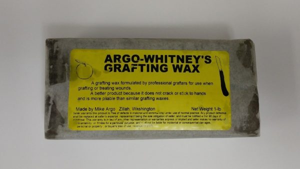 Argo-Whitney’s Grafting Wax is available in two types— Grafting Wax and Bench-Grafting Wax. The 1 pound packages of Grafting Wax are predominantly meant for use in the field when top-working or treating wounds. It is more pliable than other competitors grafting waxes, and it doesn’t crack or stick to your hands when used outside under normal conditions. The Bench-Grafting Wax is predominantly meant for use when bench grafting and sealing grafts of rootstock and scion. It will be available in larger units.